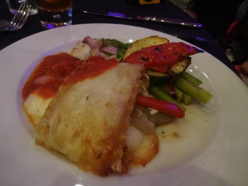 こちらがベジタリアン用のお食事 野菜パイの野菜添え(-_-;)