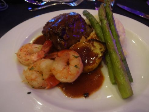 そしてメインディッシュはビーフステーキと海老のソテー