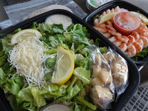 今日の朝食はコストコで買ってきた サラダとシュリンプカクテル