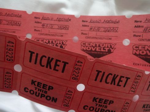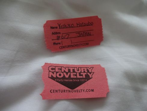 チケットはまず長く半分にカットして自分の名前と コンベンション番号を記入します