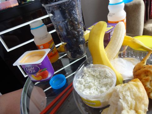 そして 今日の朝食は昨日の残ったパンとチーズ ブドウにジュース ヨーグルトとバナナ もう完璧!