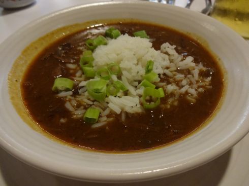 そして やっぱりニューオリンズの名物 ガンボスープを頼まなくてはです