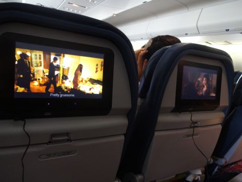 毎年乗るたびに映画のシステムは どんどん上がっていて アイパットミニが目の前にあるような感じです