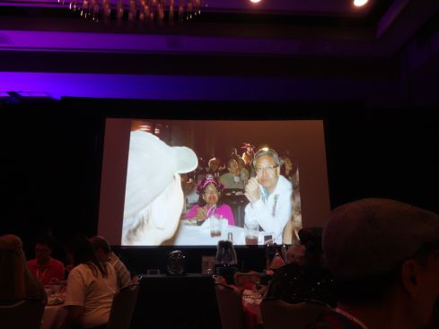 この日 大画面に夫の顔が! 昨日のパーティーで撮られた感じです