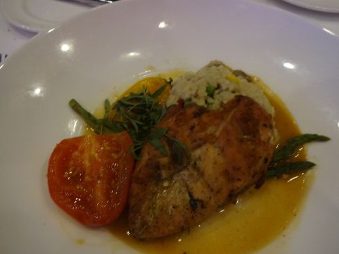 鶏の胸肉の ソテー マッシュルームリゾットが添えられています