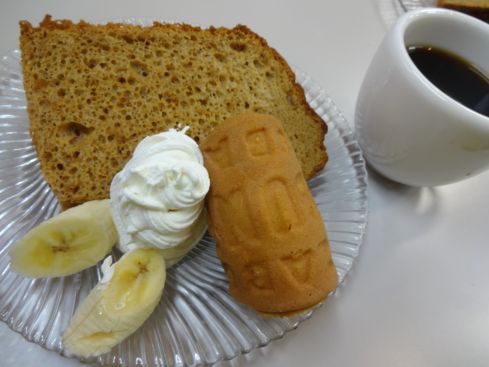今日のスィーツ バナナシフォンケーキ 砂糖を黒砂糖に変えてみました。 レモンもたっぷり入れたので さっぱりした味に仕上がりました。 差し入れのワッフルと一緒に完食! |