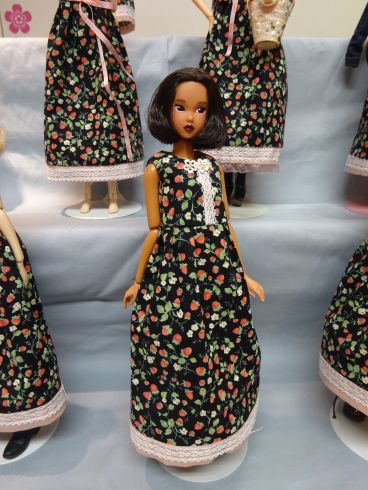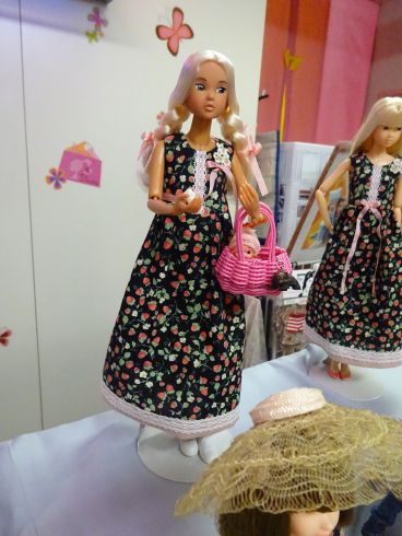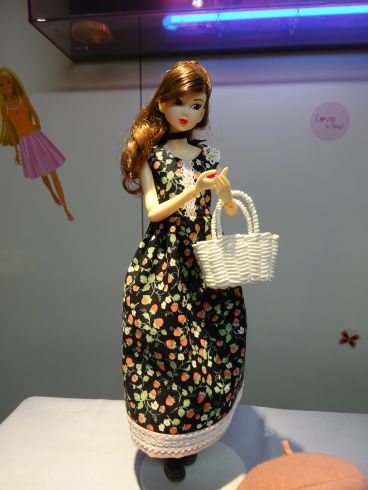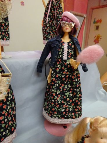| バービーの小物を持たせてかぶせて たくさんのレースやリボンが 愛情たっぷりです。