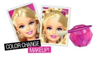 冷たい水/ぬるま湯(48℃以下)をつけると 、 メイクができちゃう! バービーの目とリップをなぞると色が変わります。