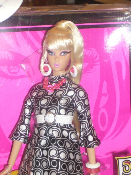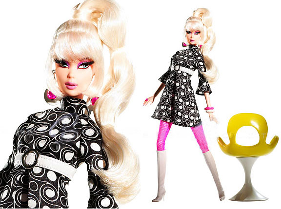 加えてホットピンクのストッキングと白いゴーゴーブーツでグルーヴィーに決めたバービー!