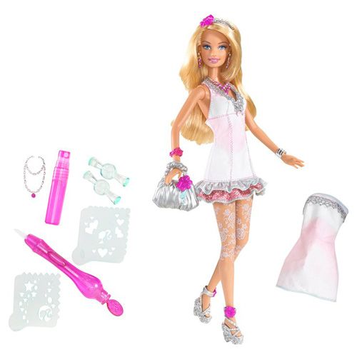 ステンシル、ペン、スタンプを使って、洋服に模様を付けて遊びましょう。