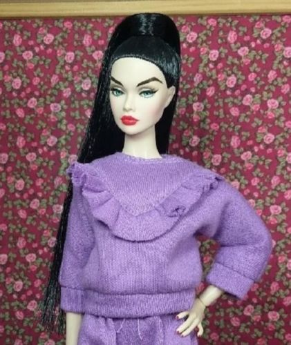 | RZ-L-100 胸元フリルTOP ¥2800 〈着用可能ドール〉 poppy parker / Barbie / FR / Misaki /momoko などの1/6ドールサイズ 胸元がフリルのパープルトップスは後ろ上部ホックです。 |