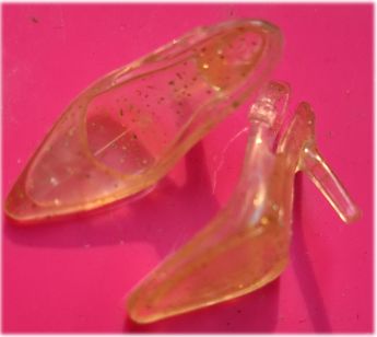 ファッションモデルが履けるバックバンドの シューズ 透明ラメいり 少し黄変あり ¥280 |