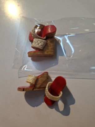 | cork wedgies ヴィンテージのピクニックセットについている シューズのリプロです 下はヴィンテージの本物 今回は上のシューズとなります ¥1000 ちなみに下のvinは¥3800 |
