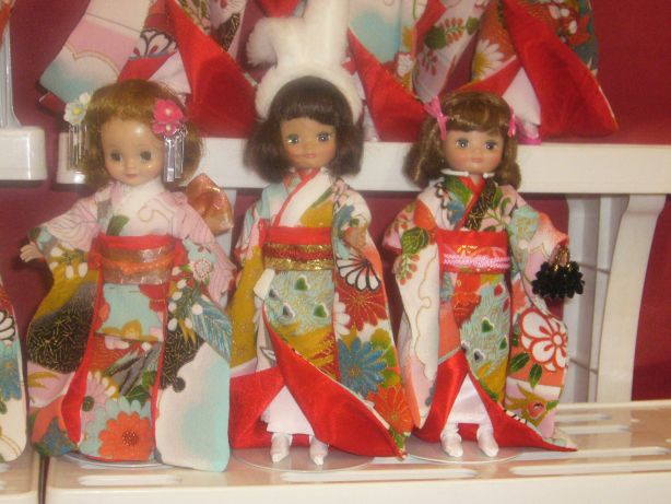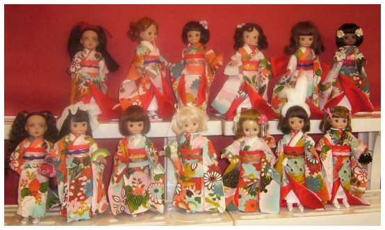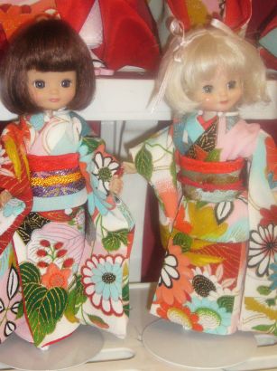 | おとなしめに着つけてみた お二人 腰あげを下にすると 子供っぽくなります 肩あげもしてみました |
