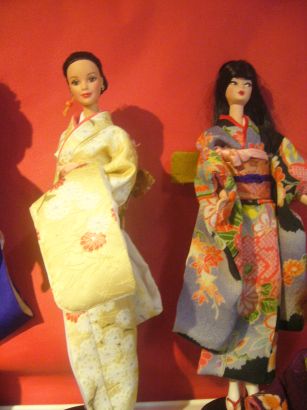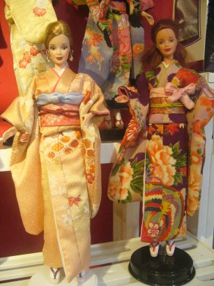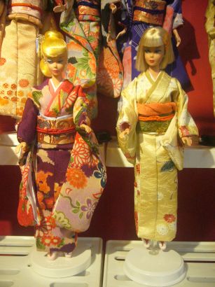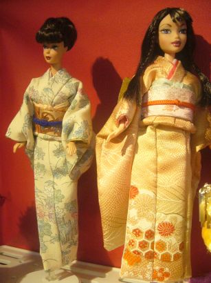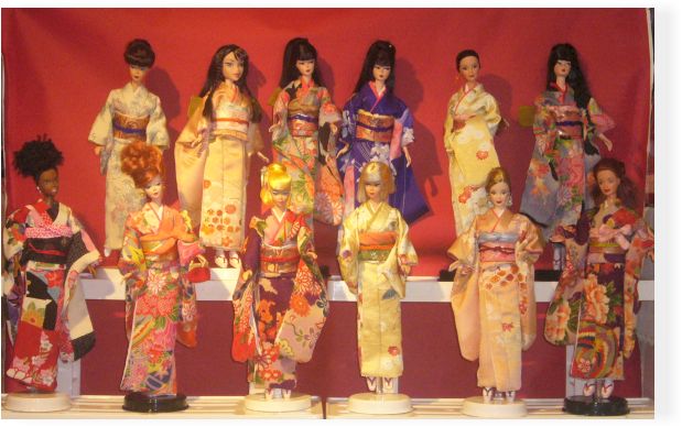 | 上品な綸子ふうの生地は 人形の着物にすると まるで付け下げのようです