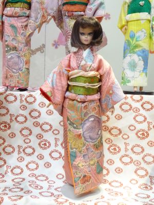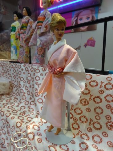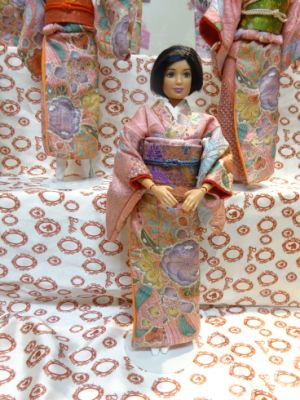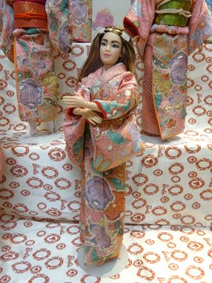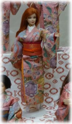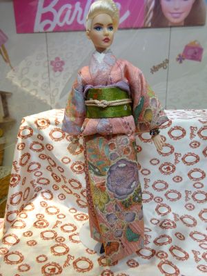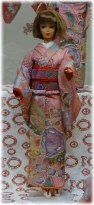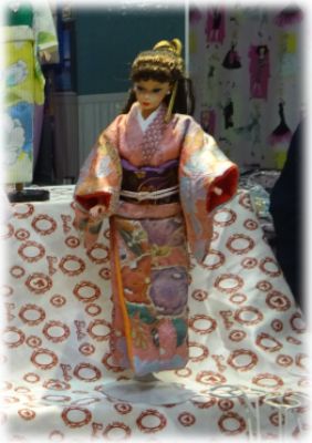 | 今回は辻が花の着物を使いました 大きな柄でも ちゃんと人形の着物になるという 証拠のような 出来上がりですね |