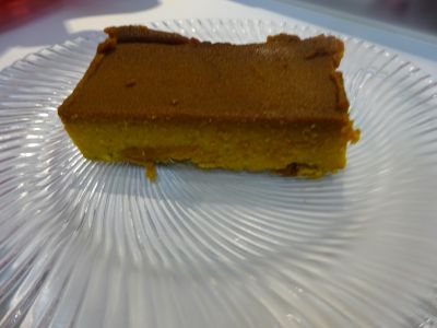 | そして 最後の打ち上げのケーキは かぼちゃのプリンですが かぼちゃたっぷりで作ったので どちらかというと かぼちゃの芋羊羹のようでした。 かぼちゃの味そのままで美味しかったです。 |