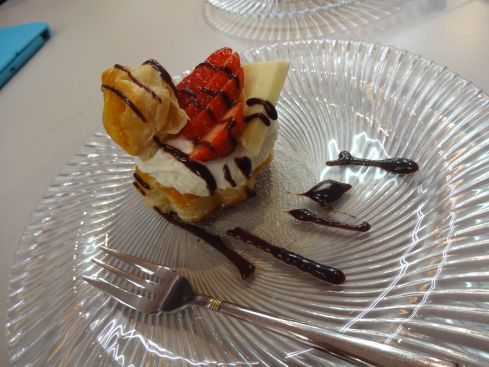 | 今日のスィーツは パイのケースを作って 生クリーム イチゴ ホワイトチョコを飾りました。 名前はありません。(^^) コンパクトでおいしくできました\(^o^)/ |