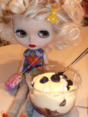 今日のスィーツは 名前がありません ブラックベリーが珍しく売っていたので ソースをつくりました それにカスタードクリームと生クリームを重ねて ブルーベリーを載せてみました ベリーベリーなパフェでしょうか (^-^) めちゃくちゃおいしかったです(自画自賛!) |