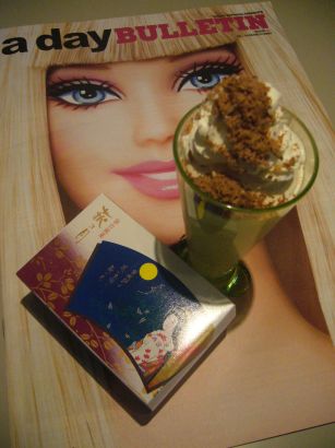差し入れの 萩の月 タイのお土産 フリーペーパー紙 バービーが特集されています |