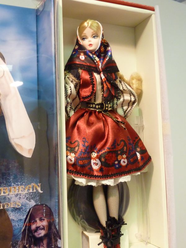 民族衣装をイメージしたミラはロシアの伝統的被り物であるバブーシカを被っています