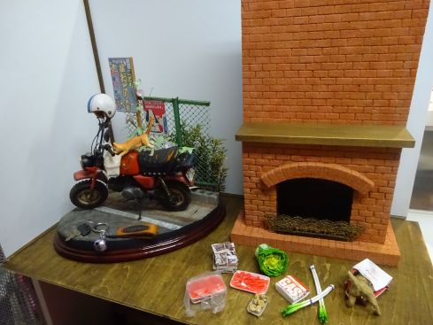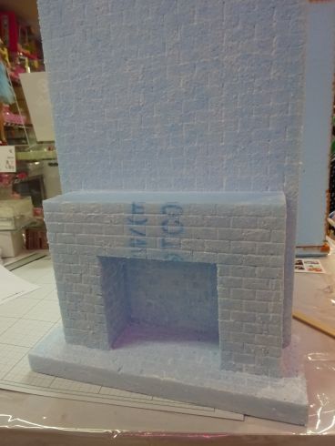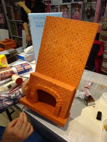 スタイロフォームを使って レンガの目地を作っていく工程から お部屋の壁を作り上げるまでを 行います ハードです。。。(-_-;) |