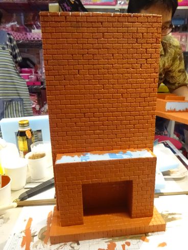 | そして 私も 本日暖炉を仕上げることができました 後ろの壁は壁紙を決めるまで仕上がりません(-_-;) 良い壁紙決まらないかなぁ・・・ |