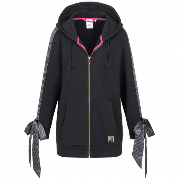 TL39226 PUMA Women's X Barbie Full Zip Hoodie 13636+税 ¥15000 輸入品 サイドのラインから袖にあしらわれているリボンは バービーのロゴで埋め尽くされています サイズは M バスト36インチ ウエスト29インチ S バスト 34インチ ウエスト26インチ 1インチは2,54㎝ 布製品に戻る