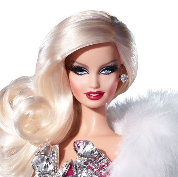 美しいブロンドヘアのバービーが、煌びやかなシルバーのドレスに