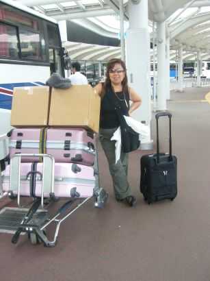 右端にある私たちの荷物 スーツケース2個 段ボール2個