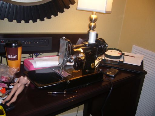 次のお部屋には なんとこんなに可愛いミシンが置かれていて 縫い物をしています