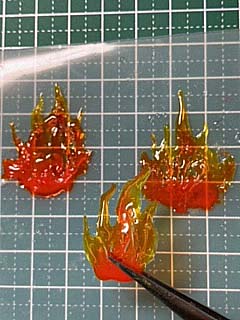 <炎の作り方> 今回は中心にシリコンモールドで作ったパーツを使っていますが |