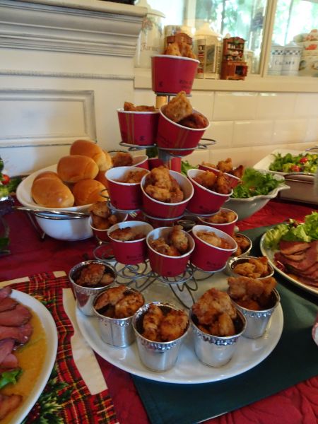 から揚げがカップに入っていて そしてこちらもツリーの様なディスプレーです