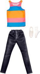 | Barbie Fashion Pack Ken Black Jeans Trousers + Striped Tank Top and White Sneakers |